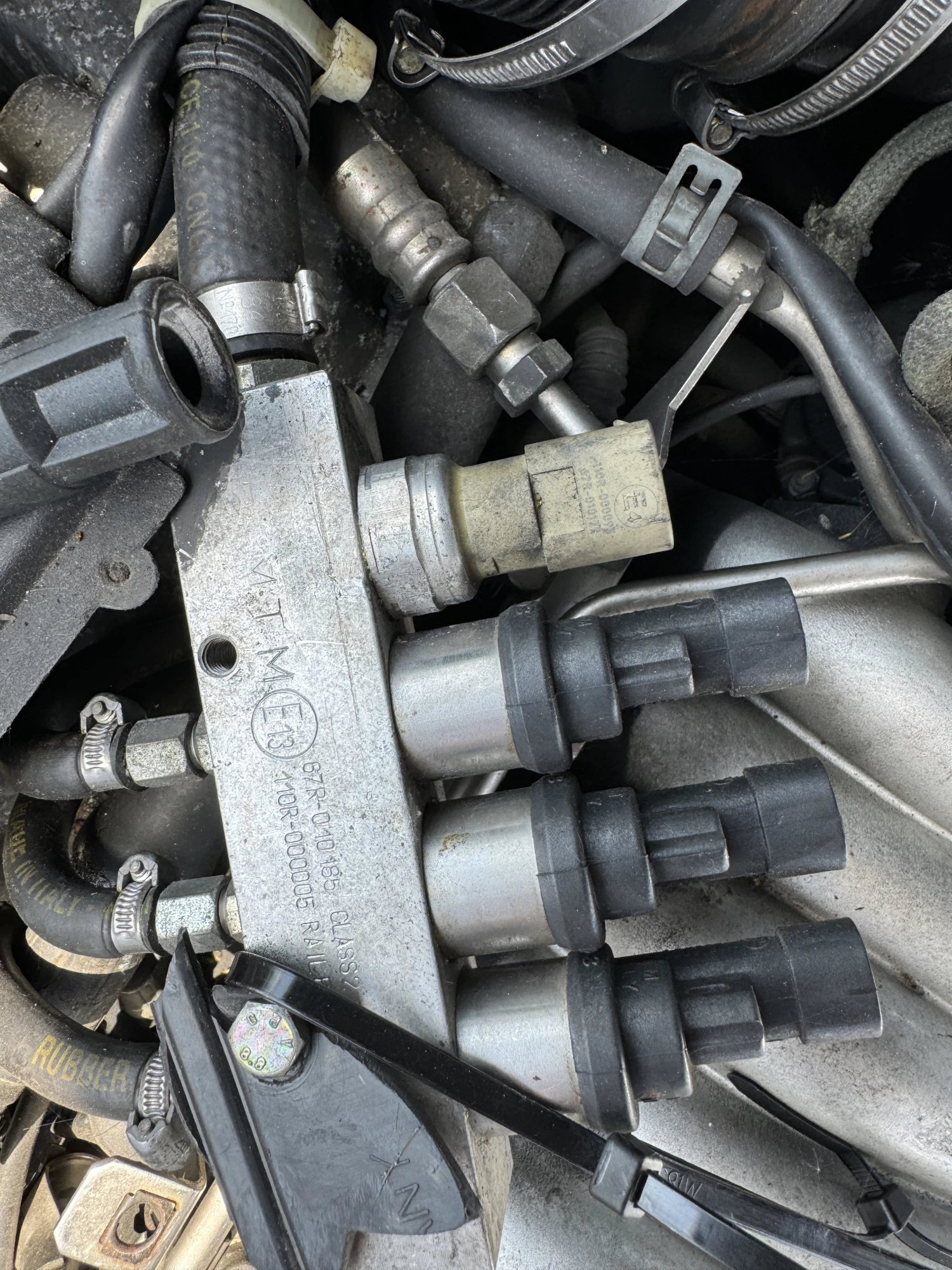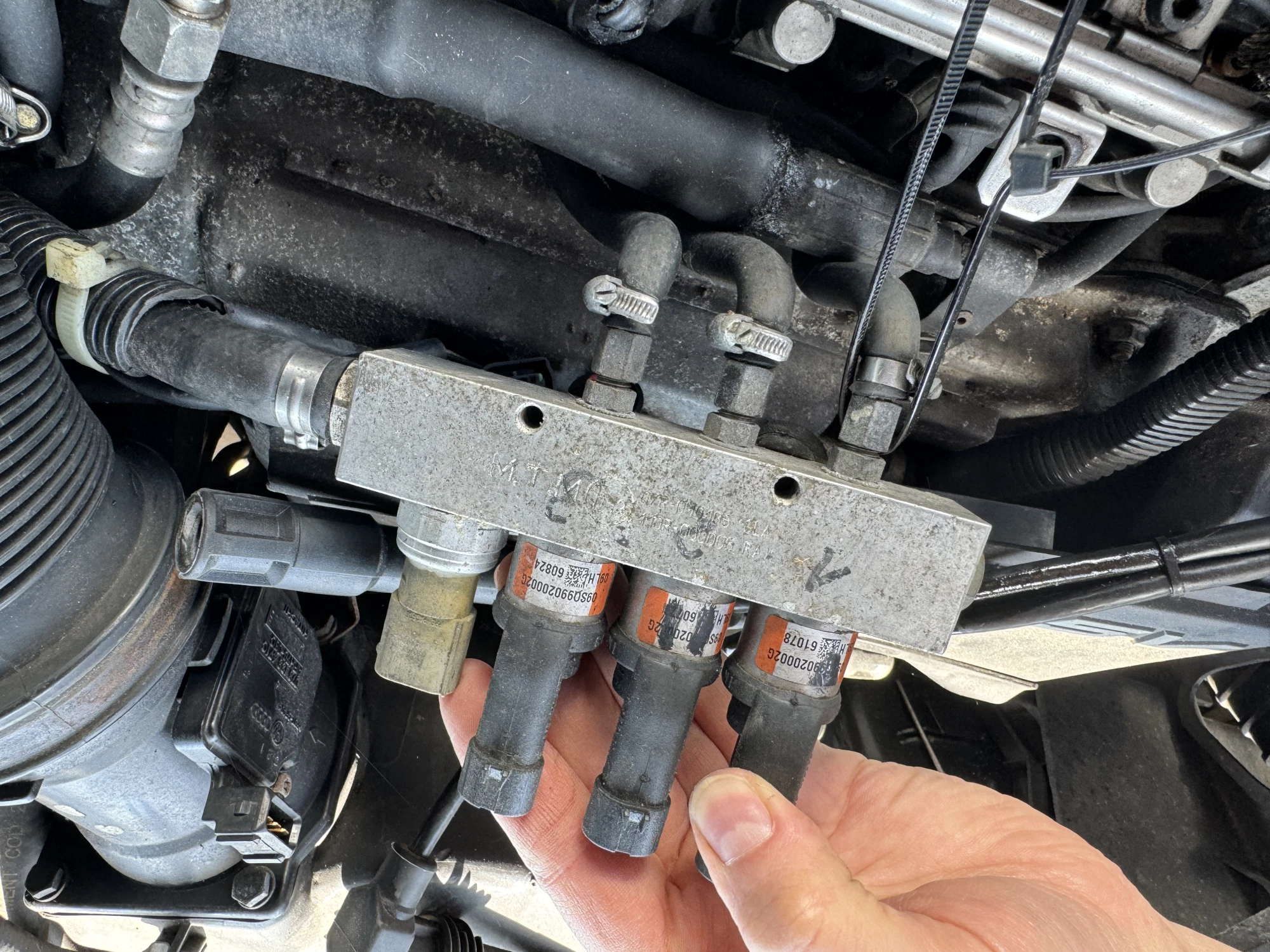Angeboten werden 3 Einspritzdüsen mit der Leiste aus einem Audi A4.