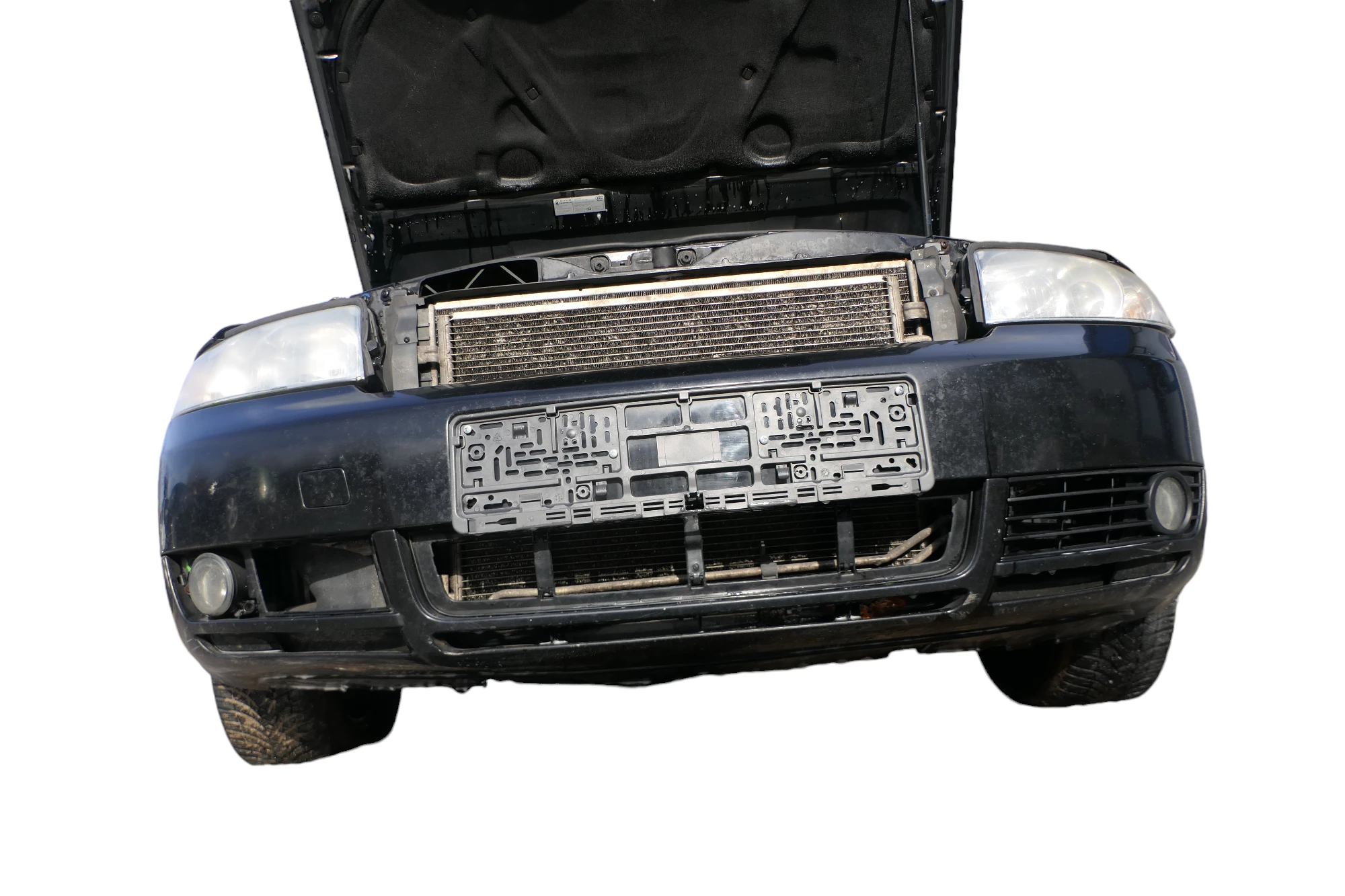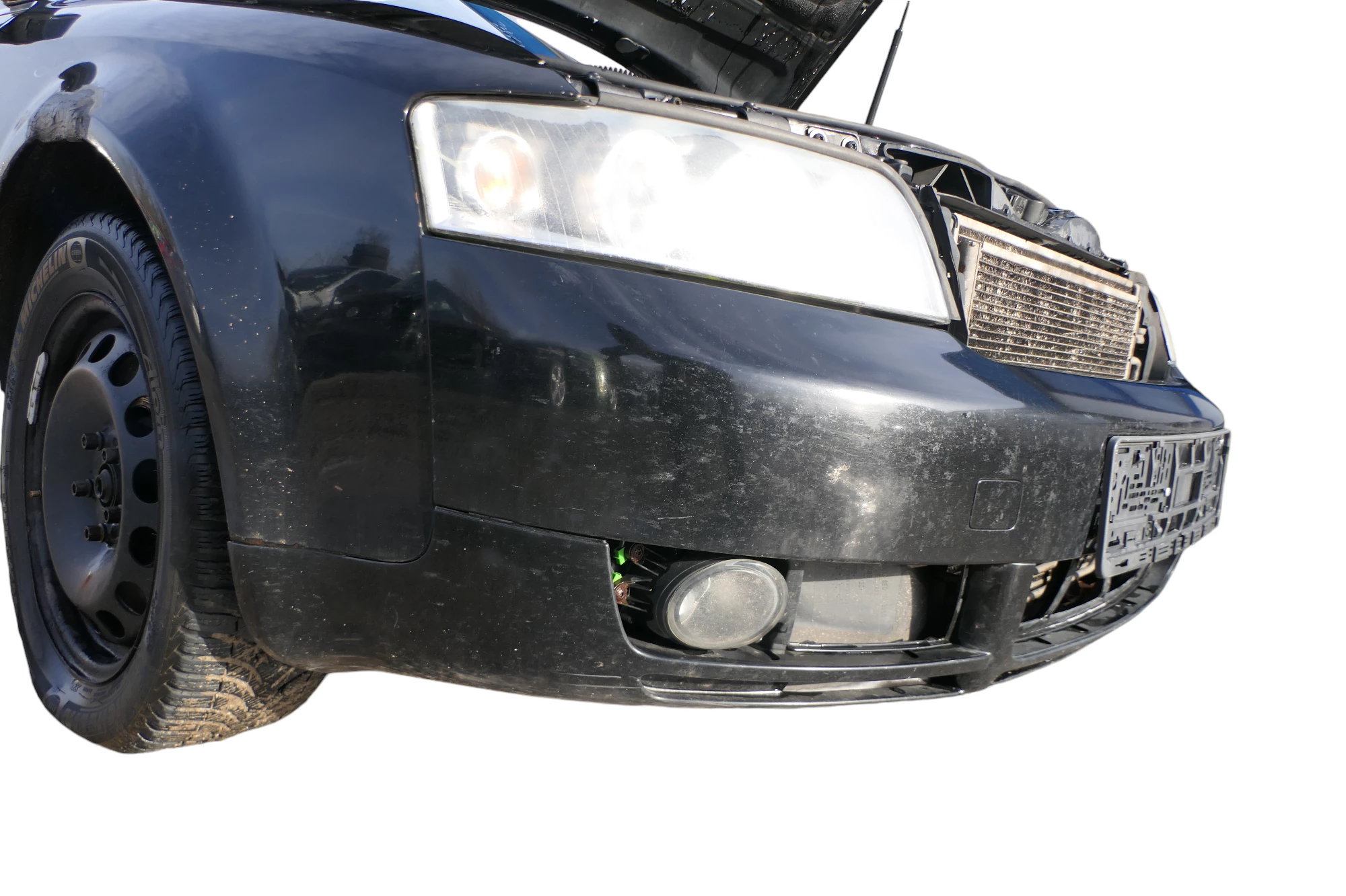 Angeboten wird eine Frontstoßstange ohne Einparkhilfe, mit Spoiler aus einem Audi A4 8E B6 Bj. 2004 Kombi Variant TDI.
