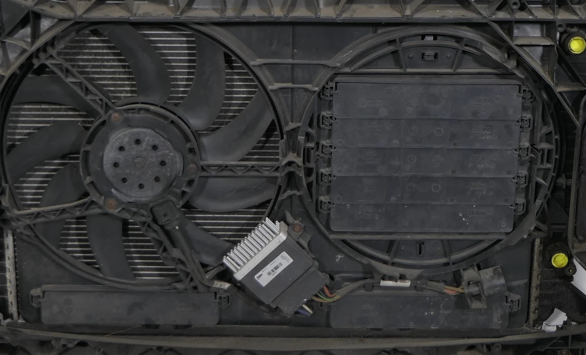 Angeboten wird eine Lüfterzarge (für Klimaanlage oder Climatronic) mit Lüfter aus einem Audi A4 8K Bj. 2008.