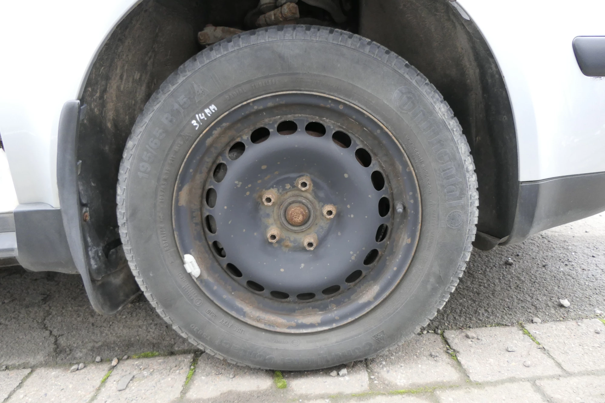Angeboten wird ein Satz Stahlfelgen mit Winterreifen 195/65 R15 91T von Continental, Herstellung 3210 mit ca. 2x um die 3-4mm und 2x ca. 5-6mm Profil auf Felge 6jx15H2 ET37 aus einem Audi A6 4B Bj. 2000.