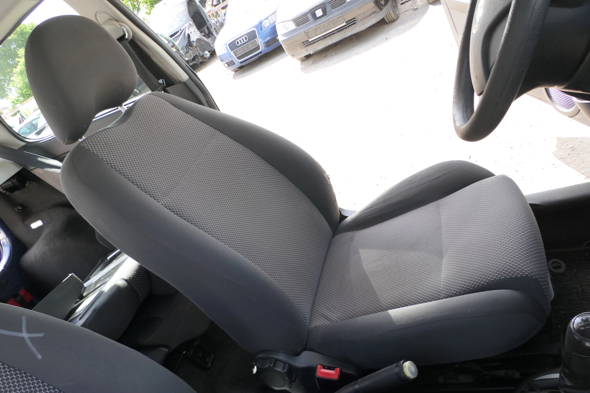 Lieferung ohne Kopfstütze. Angeboten wird ein Fahrersitz (höhenverstellbar, OHNE Sitzheizung und OHNE Airbag) aus einem VW Fox 3-Türer Bj. 2005.