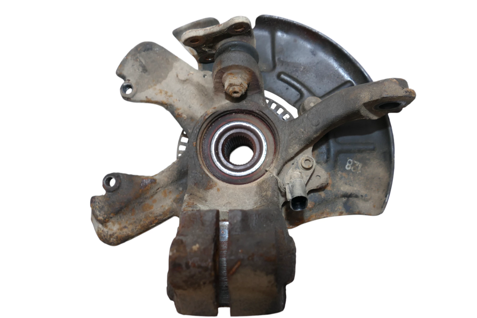 Angeboten wird ein Achsschenkel (mit intaktem Radlager) für 280er Bremsscheibe, also schon die etwas größere, aus einem VW Golf 4 / Bora /A3 8L etc. 1,9 TDI 66kw ALH Motor Bj. 2001.