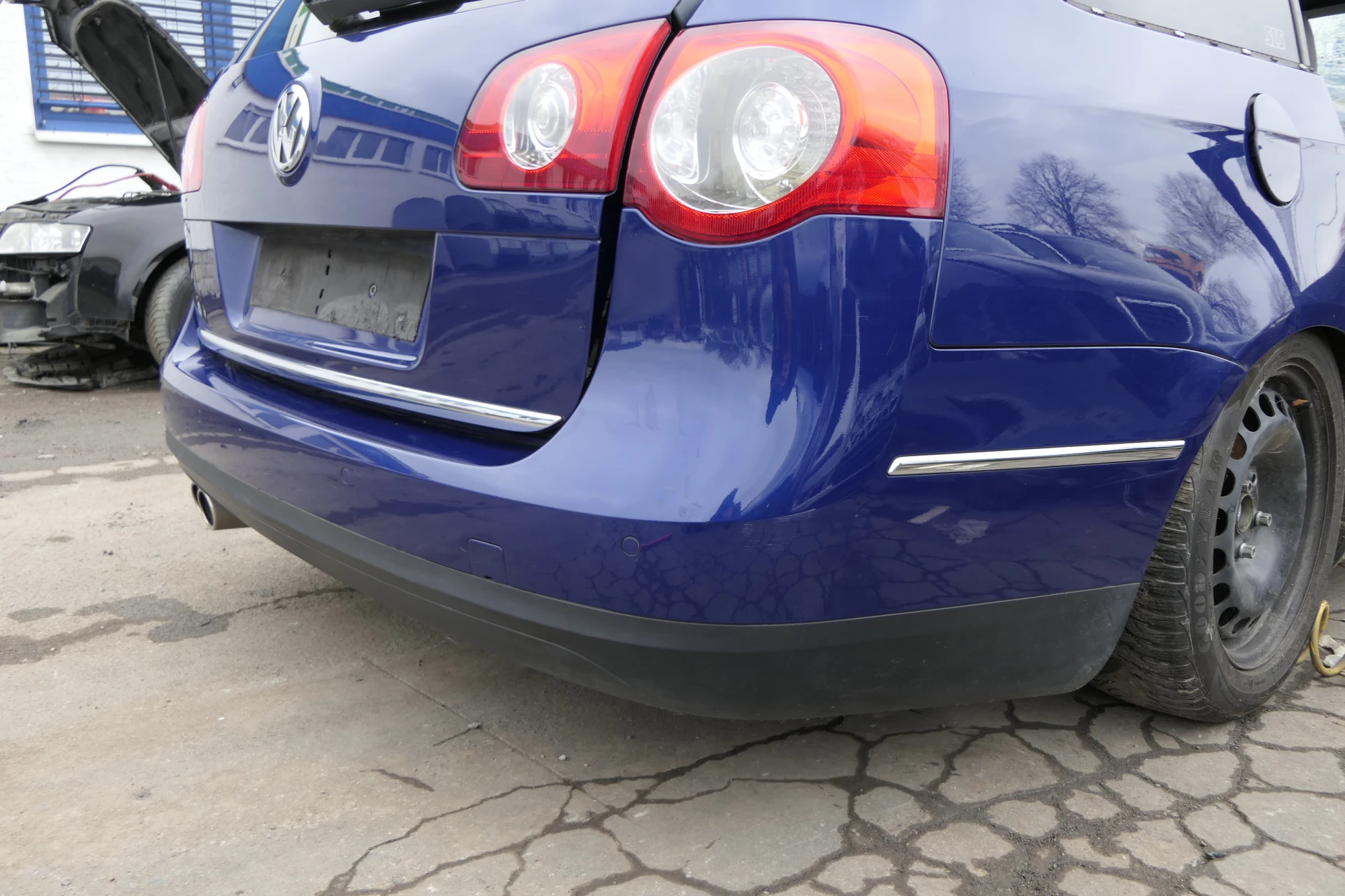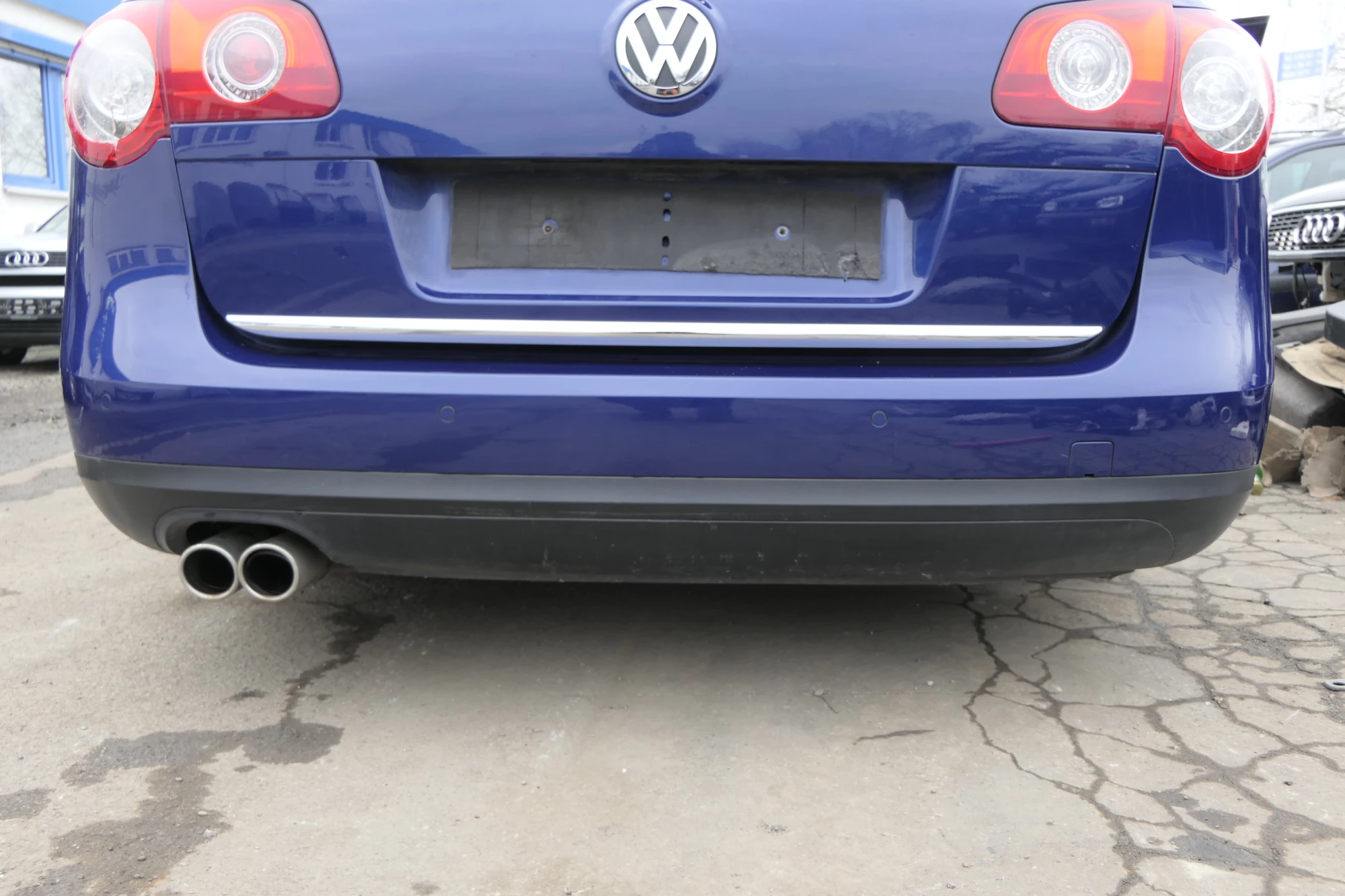 VW Passat 3C Kombi Stoßstange hinten Heckstoßstange Stoßfänger blau LC5E PDC