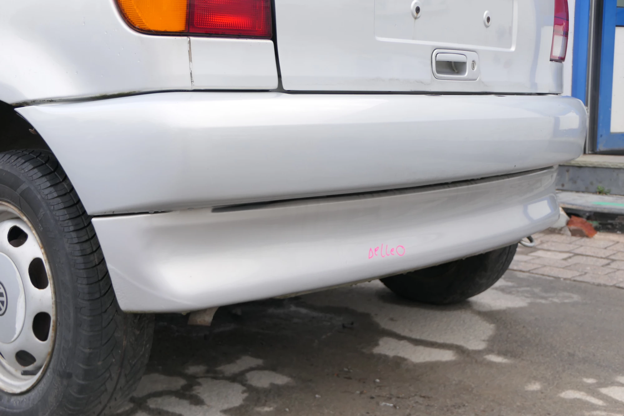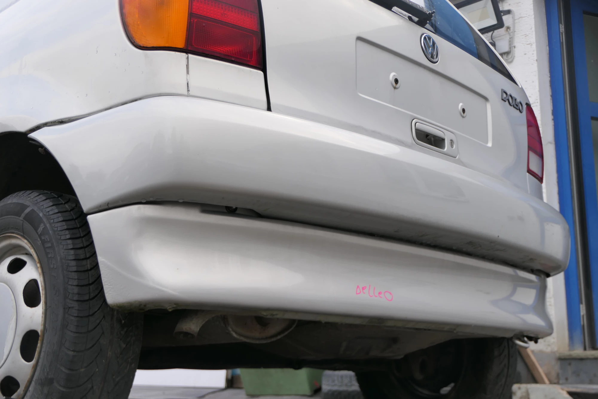 VW Polo 6N Stoßstange hinten 2-geteilte Heckstoßstange silber LB7Z Stoßfänger