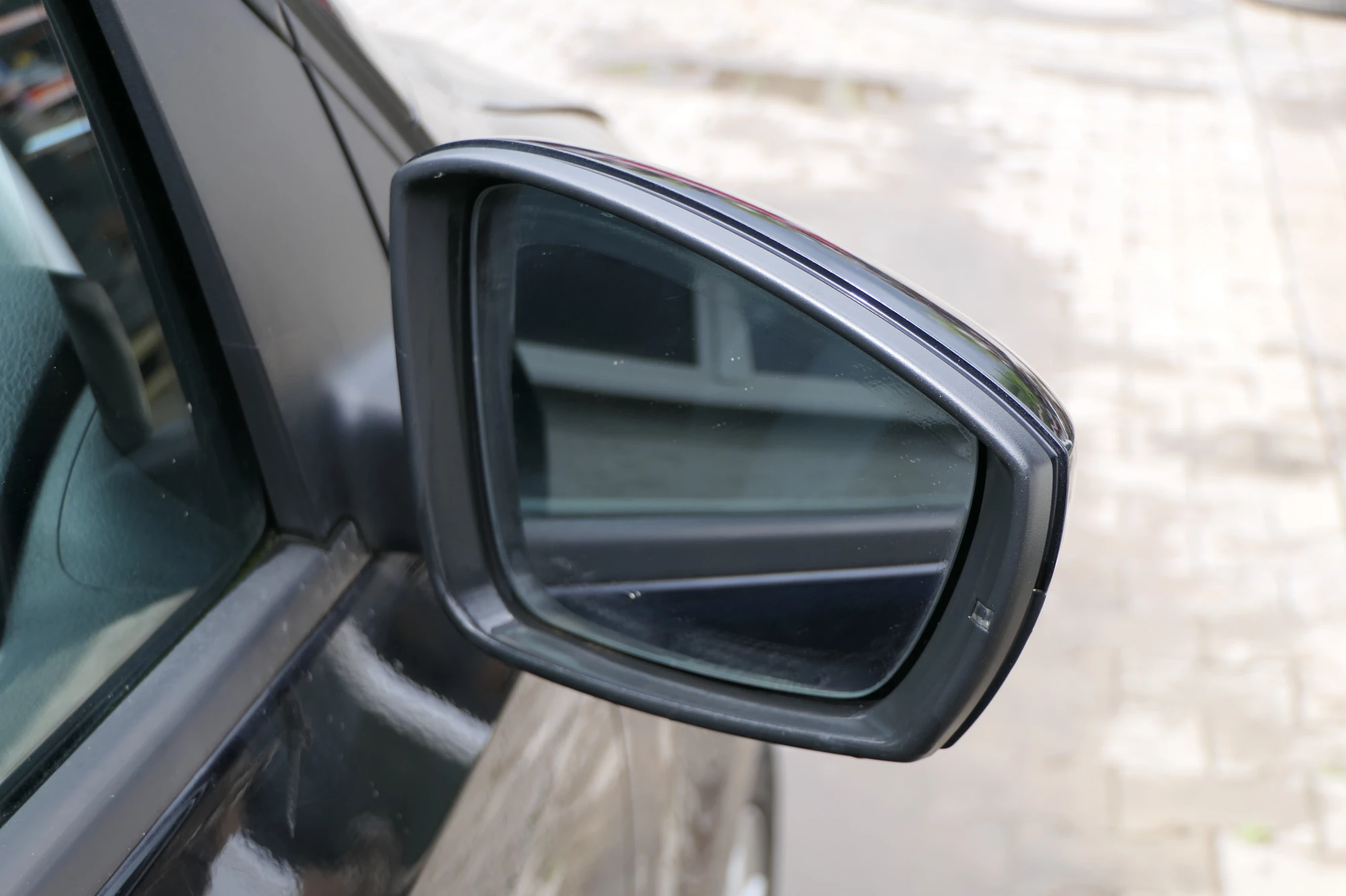 Angeboten wird ein elektrisch verstellbarer Außenspiegel mit Spiegelglas aus einem VW Polo 6R.